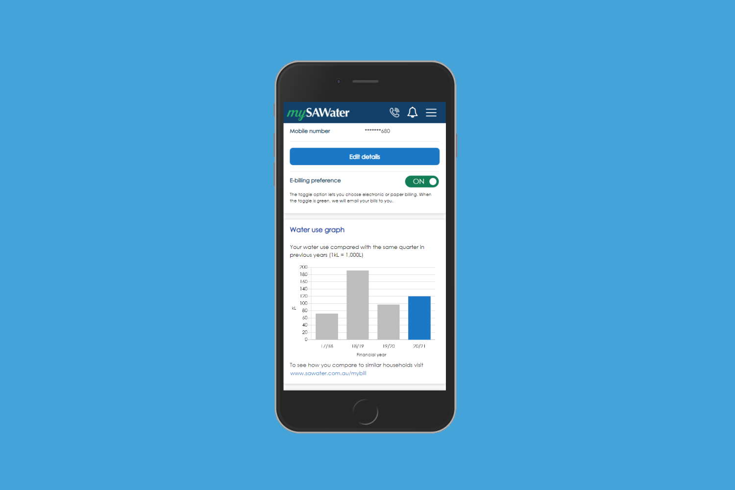 mySAWater is the new portal that customers use to view, manage and pay their bills and track their water use. The responsive web application adapts for web and mobile and integrates with internal systems through a set of well documented and structured APIs.